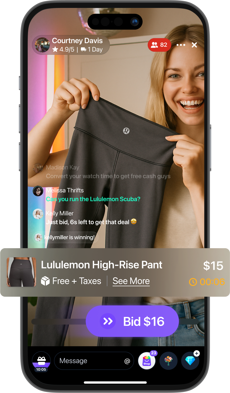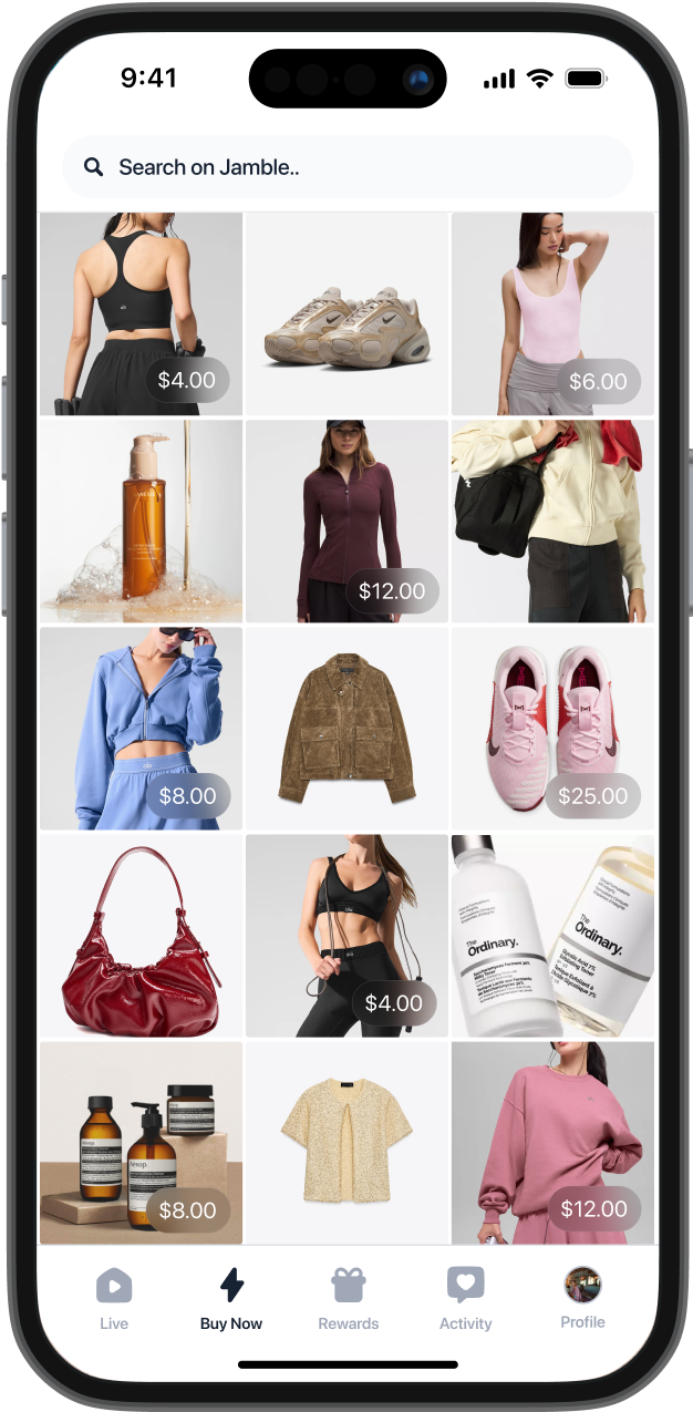Step into Jamble's unique fashion landscape: from exploring livestreams to placing winning bids, experience an effortless and exhilarating shopping journey.
